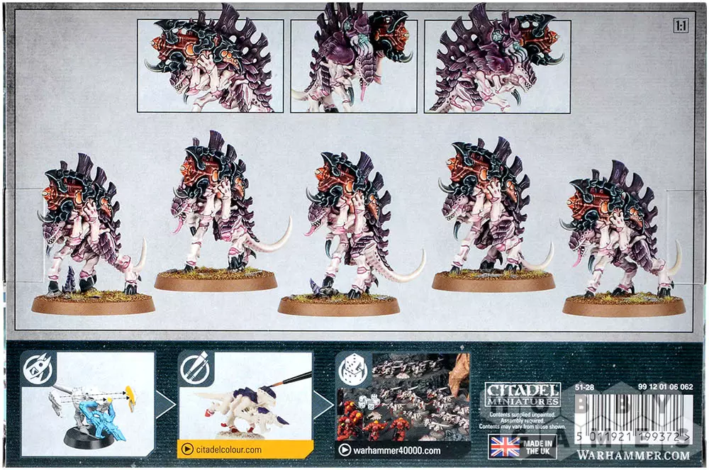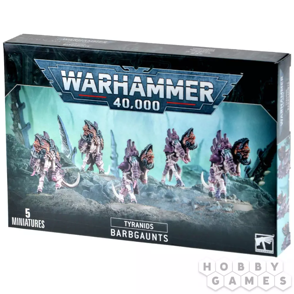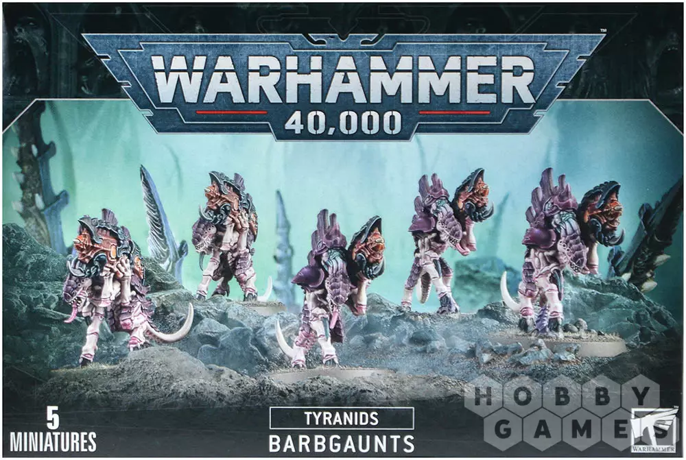 В данном наборе вы найдёте 20 компонентов, необходимых для сборки пяти Барбгаунтов: Тиранидов (Tyranid), выведенных с целью существовать в роли живой артиллерии. Каждый из них обладает шестью конечностями, пять из которых задействованы для передвижения или стабилизации массивного орудия, а шестая больше напоминает атрофированный коготь. Барбгаунты контролируются церебральными паразитами, что запустили жуткие щупальца прямо в их безглазые черепа, чтобы направлять органические залпы к врагам роя.