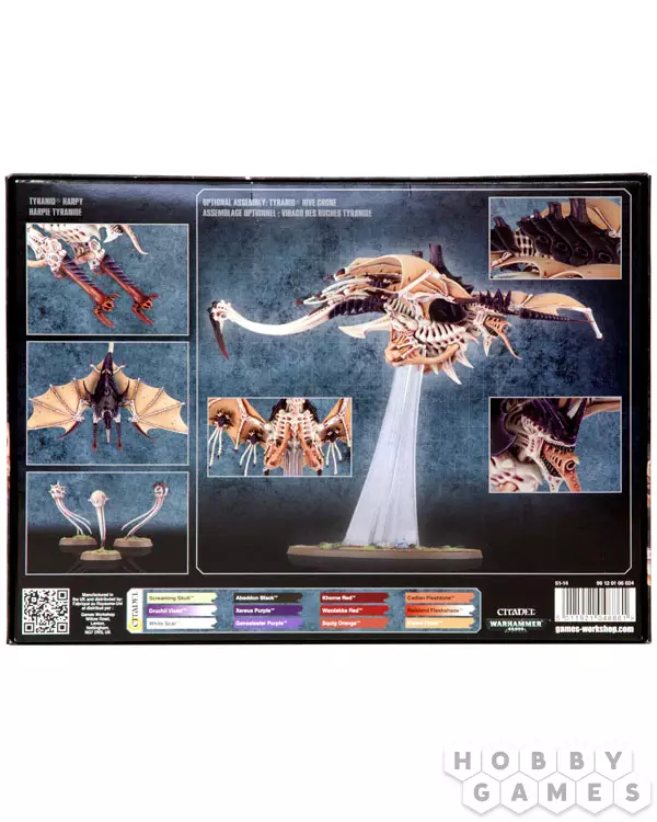 Оба юнита собираются из одинаковых деталей тела и крыльев. Модель Tyranid Harpy обладает двумя типами вооружения и устрашает врагов своей головой с длинным высунутым языком и гребнем, а также бронированным панцирем с рядом вертикальных шипов и альтернативным кончиком хвоста. Набор содержит три уникальные бомбы-споры, которые могут быть добавлены на Tyranid Harpy. Модель Hive Crone отличается устрашающей пушкой, а голову и спину защищает бронированный гребень. Также к нижней части модели можно добавить четыре органических отростка.