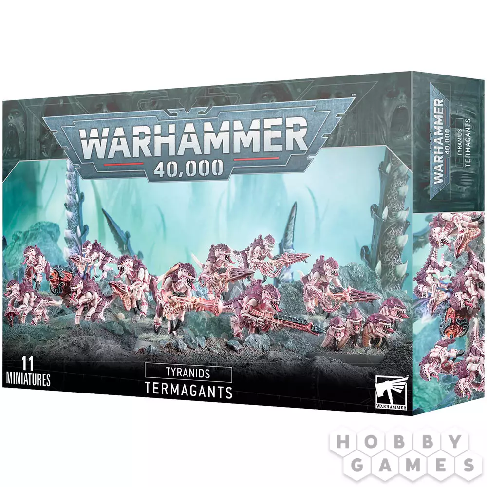 Термаганты (Termagant) – быстрые, подвижные и коварные существа. Их отряды идут на острие атаки в планетарных вторжениях Великого Пожирателя. Шустро перебирая четырьмя лапами, термагант поливает противника огнём из особого органического оружия, сжатого в его когтистых передних конечностях.