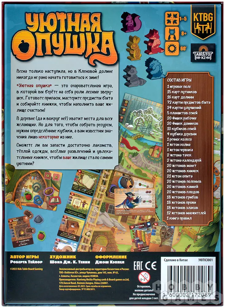 "Уютная опушка" – это увлекательная настольная игра, где игроки берут на себя роль обитателей леса. Игра сочетает в себе механики размещения и активации рабочих, что делает её интересной и разнообразной.