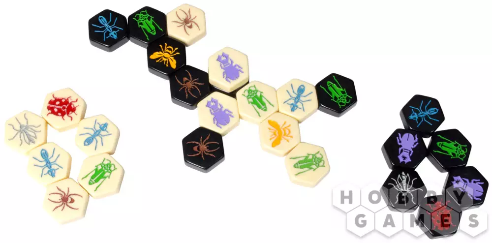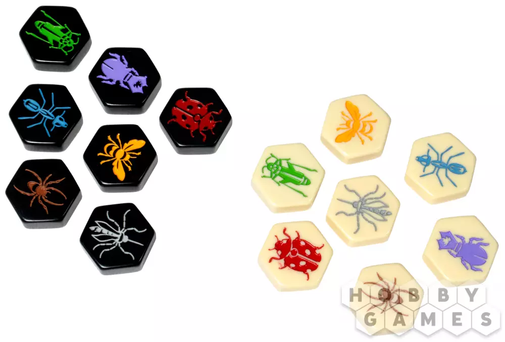 В игре 5 видов фишек, каждое из насекомых двигается по-разному. Пауки и муравьи хороши для быстрых маневров, кузнечики – для обхода вражеских фишек, а жуки для их блокирования. В "Улей" всегда увлекательно играть, испытывая всё новые и новые тактики блокирования наступления.