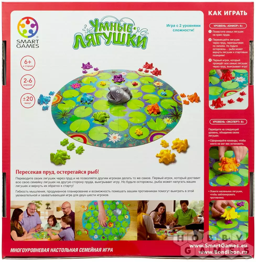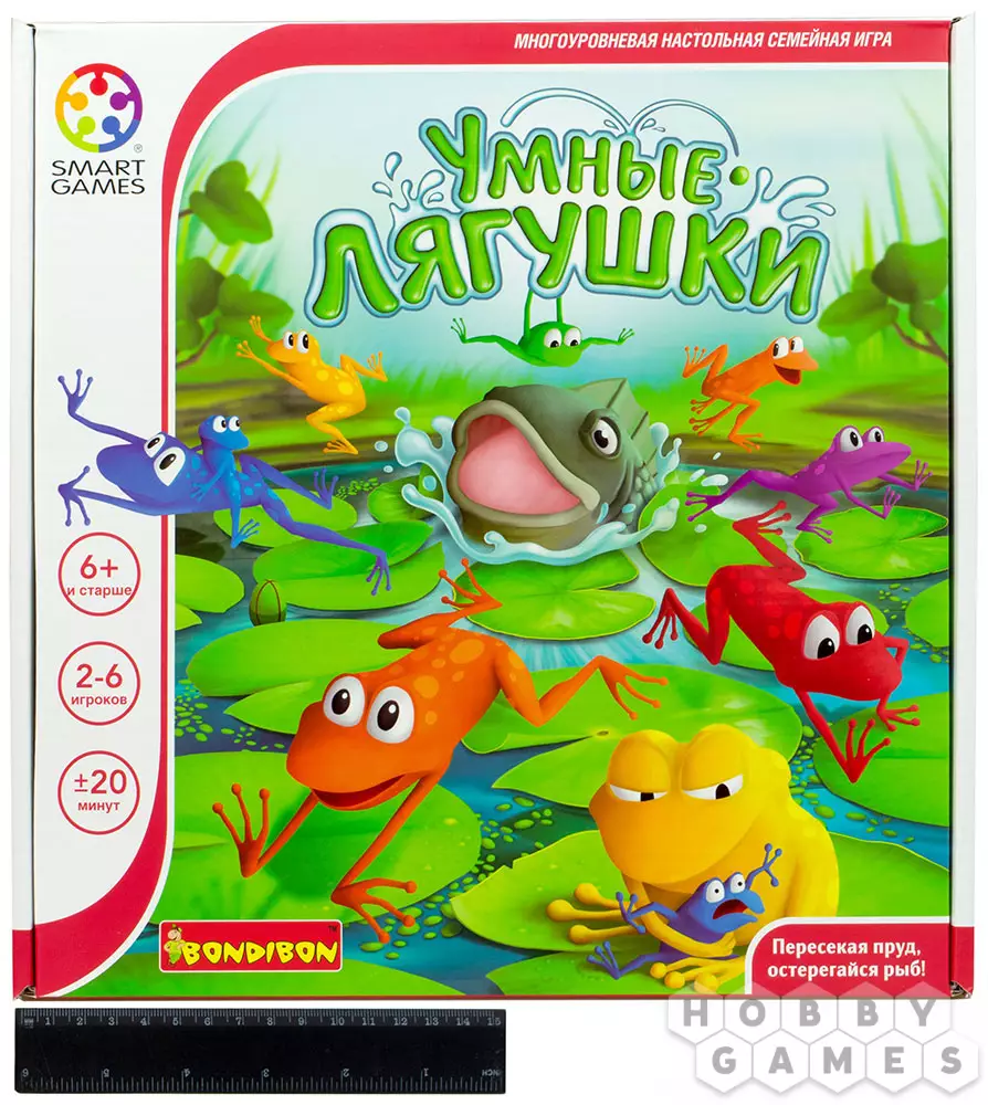 Время прыгать по болотам! Соберитесь всей семьёй за игральным столом и помогите лягушкам добраться до противоположного берега пруда. Каждый из игроков управляет своей командой земноводных, весело скачущих по кувшинкам и лилиям. При этом все стараются помешать друг другу добраться до финиша первыми. Но на пути лягушат есть и другая опасность: прожорливая рыба, притаившаяся в пруду. Аккуратно передвигайте своих подопечных, иначе рыба может напугать их и вернуть к старту.