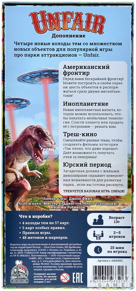 Дополнение к игре Unfair открывает новые возможности, темы и вызовы, повышает реиграбельность и разнообразие базовой игры. Теперь вы сможете предложить посетителям намного больше развлечений.