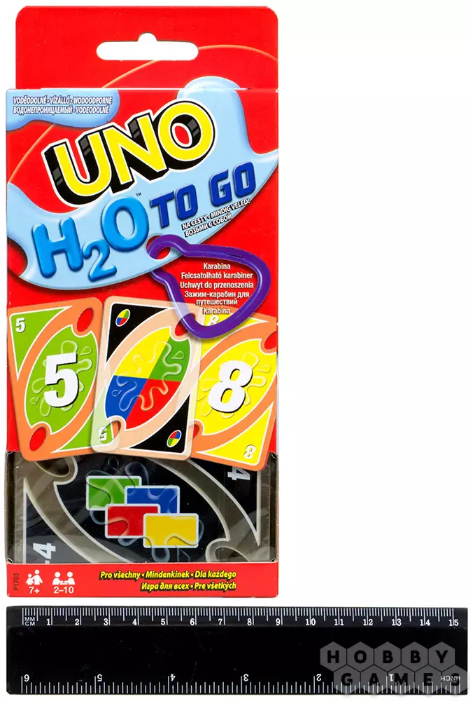 Легендарная игра UNO всегда была отличным вариантом дорожной игры. Данное издание UNO H2O to go выгодно отличается от привычной классической версии тем, что её карты полностью изготовлены из пластика, а это значит, что им абсолютно нипочём различные внешние воздействия. Любая влага, будь то дождь, снег или пролитый на карты напиток теперь будут безопасны для игры! Плюс к этому эти пластиковые карты имеют в углах специальные отверстия, а карабин, входящий в комплект, исключит неожиданную потерю компонентов. Наслаждайтесь любимой игрой в любом месте и не переживайте за её сохранность!