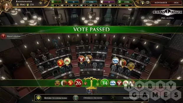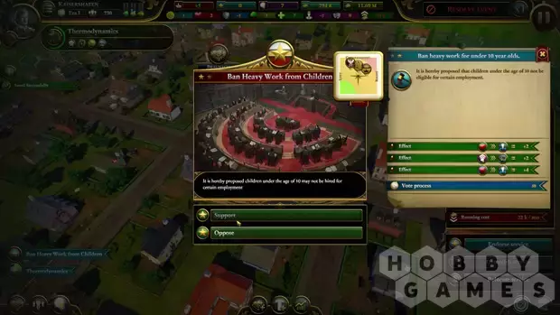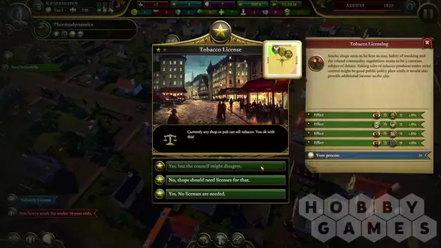 - Вводите новые технологии, такие как трамваи, антибиотики или видеоигры, и пользуйтесь влиянием, чтобы убедить городской совет в необходимости выполнять ваши политические задачи.