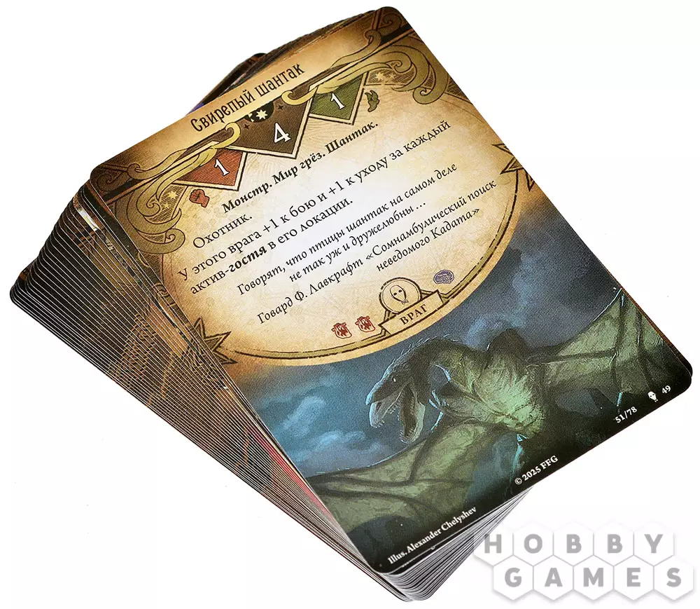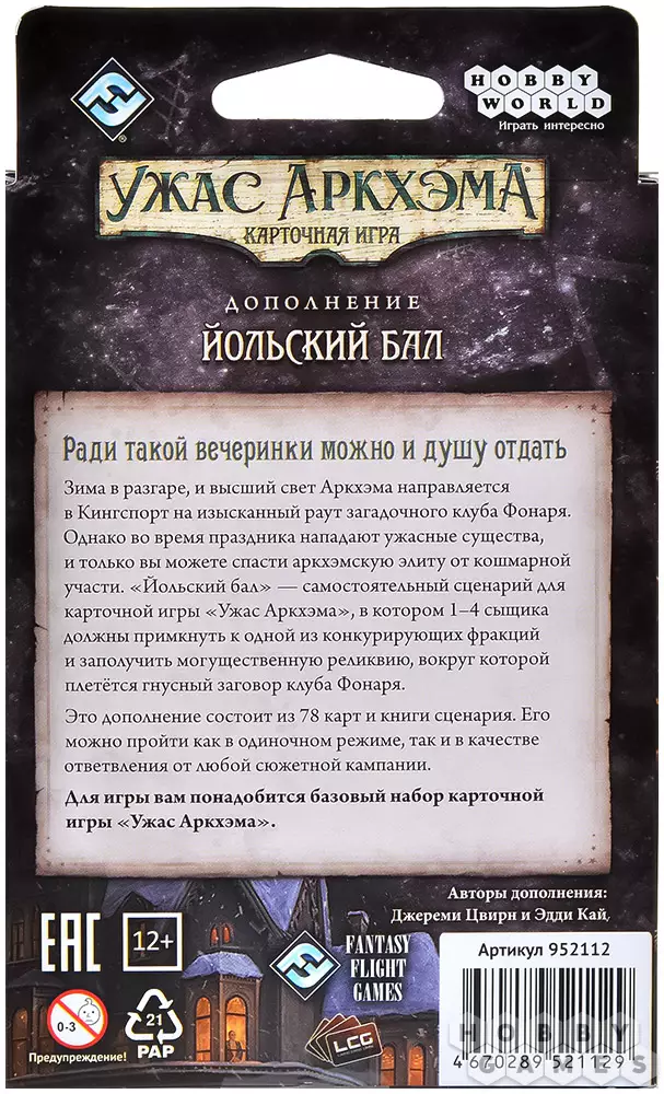"Ужас Аркхэма. Карточная игра" – это кооперативная Живая Карточная Игра в сеттинге мифов Лавкрафта, в которой 1-2 сыщика (а со вторым набором – 3-4) смогут совместно познакомиться с миром оккультизма, древних богов и тайн, параллельно борясь и со своими внутренними демонами из прошлого.