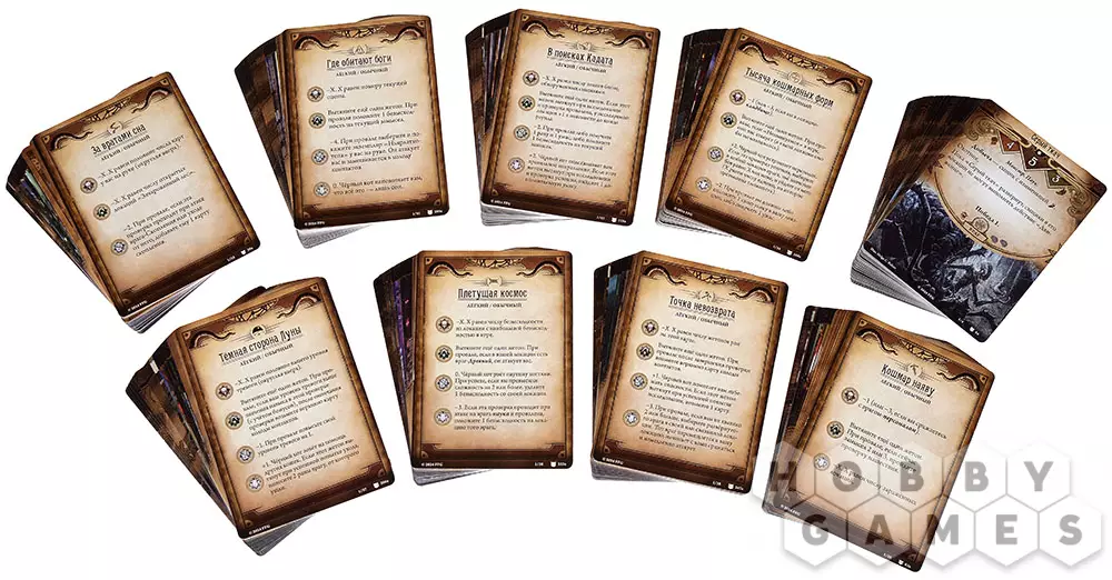 Игроки управляют действиями персонажей посредством своей колоды сыщика. Сценарии ведут кампании, предлагая интереснейшее приключение.