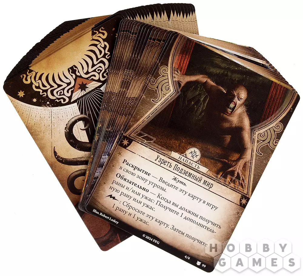 "Ужас Аркхэма. Карточная игра" – это кооперативная Живая Карточная Игра в сеттинге мифов Лавкрафта, в которой 1-2 сыщика (а со вторым набором – 3-4) совместно познакомятся с миром оккультизма, древних богов и тайн, параллельно борясь и с внутренними демонами из своего прошлого.