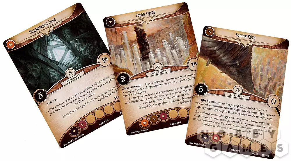 Каждый игрок берет на себя роль одного из сыщиков и собирает собственную колоду, опираясь на способности своего персонажа. В основе игрового процесса находятся взаимосвязанные между собой сценарии, которые задают игре темп и создают художественное повествование. Партии в этой игре безумно атмосферные! Набор сценариев превращается в кампанию. В каждом сценарии сыщики попадают в различные локации и исследуют их в поисках улик, которые необходимы для продвижения расследования и открытия тайн.