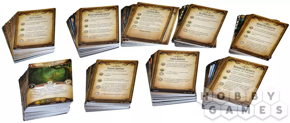 Игроки управляют действиями персонажей посредством своей колоды сыщика. Сценарии ведут кампании, предлагая интереснейшее приключение.