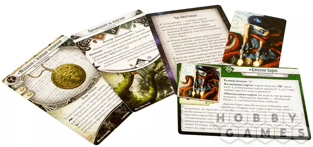 Приятным бонусом к книге является набор промокарточек для игры "Ужас Аркхэма. Карточная игра", среди которых есть и карта Дженни Барнс.