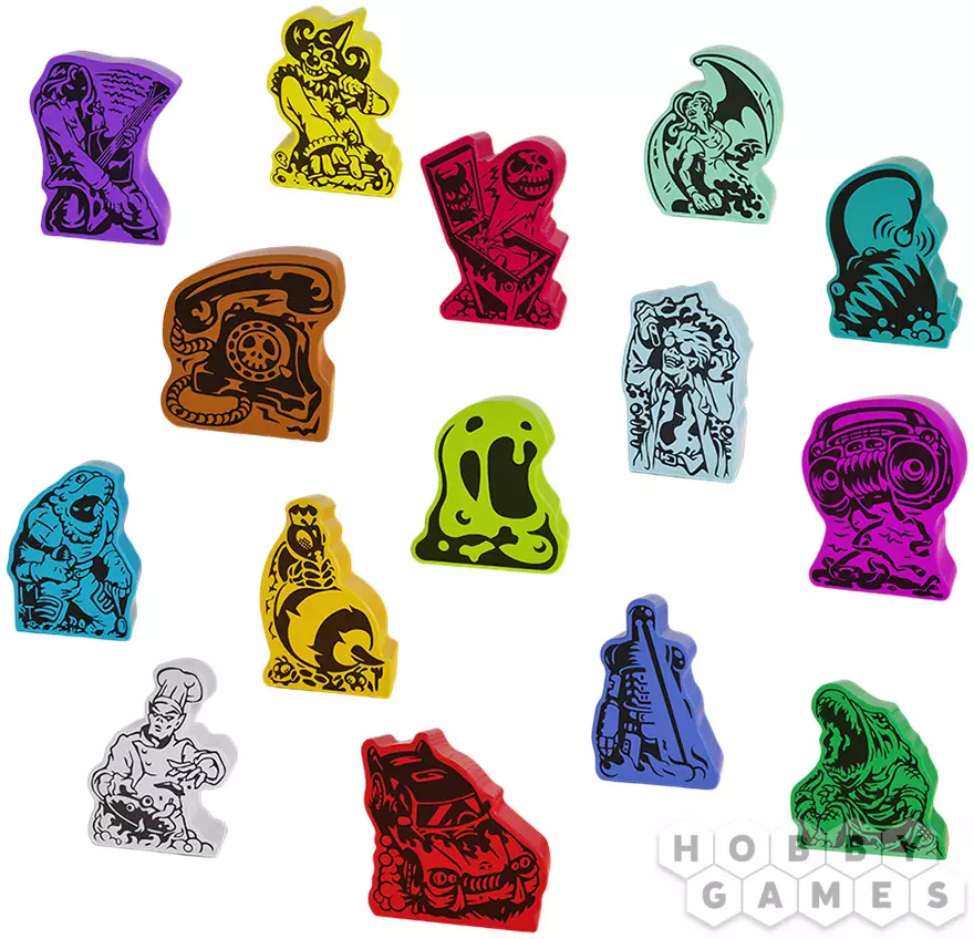 Используйте особые способности своего ужастика, чтобы нарушать правила, срывать планы соперников и создавать эффектные комбо. Маркеры ПО на треке показывают ваш текущий прогресс, а второй комплект маркеров помогает отслеживать очередь хода. Стратегия проста: действуйте быстро, мешайте другим и помните – главное тут не сила, а умение напугать зрителей эффектно!