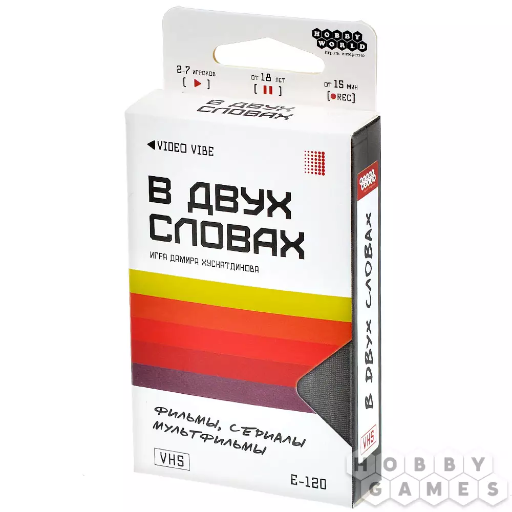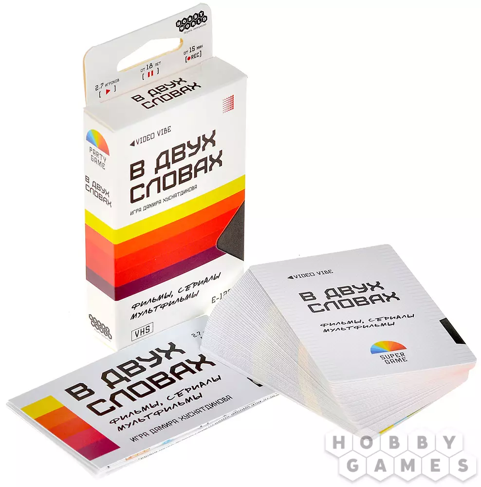"В двух словах: Кино" – это быстрая, азартная и весёлая настольная игра, в которой участники проверят свои находчивость и умение быстро соображать. Важно будет не просто знать фильмы, сериалы и мультфильмы, но и уметь передать их суть всего в двух словах! Игра идеально подойдёт для киноманов, вечеринок и дружеских посиделок. Она привнесёт в вашу компанию дух соперничества и массу забавных моментов. Проверь, кто из вас настоящий гуру кинематографа!