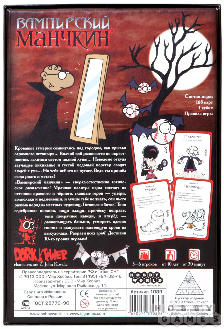 Город окутан холодным туманом и опасные тени мелькают за его пеленой… Лунный свет едва пробивается сквозь облака и где-то воют волки… Кто-то, жаждущий человечьей крови, выходит в такую погодку на охоту… Бегите или прячьтесь, это страшный и ужасный – "Вампирский Манчкин"!