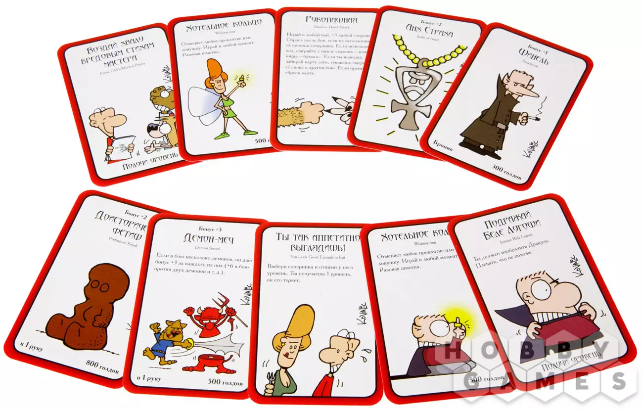 Итак, настольная игра "Манчкин" – это ролевая игра по форме, пародия по содержанию. Манчкины игроков ходят по подземелью, вытаскивают на свет божий тамошних чудовищных обитателей и либо раскаиваются в этом, либо получают за победу новые уровни и сокровища. Исход каждого подобного приключения (боя, короче) зависит от того, кто с чем на бой вышел. У игрока это уровень и бонусы/штрафы от шмоток, класса, расы и проклятий. У монстра это уровень плюс карты-усилители и разовые шмотки. Откуда шмотки у монстра? В Вашем бою могут принять участие и завистливые соперники: они могут помогать монстру и ослаблять вас. Поэтому, хотя в "Манчкин" и можно играть вдвоём, наберите на матч побольше народу: на руках будет больше проклятий, усилителей и зелий, которыми так легко изменить баланс сил в бою в любую сторону, и бдительные завистники не дадут никому из Вас выйти в единоличные лидеры гонки к 10-му победному уровню.