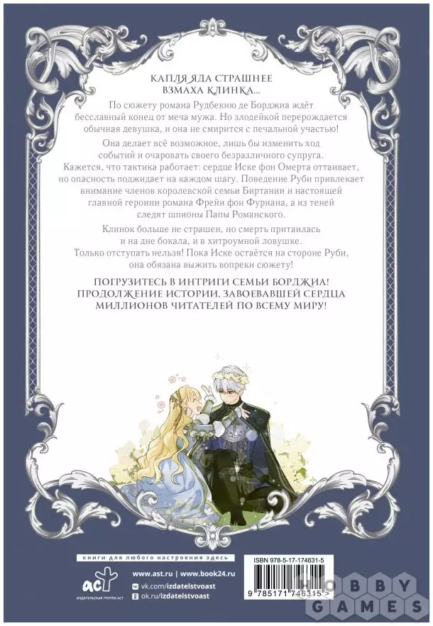 Едва оправившись после жуткой авиакатастрофы, героиня с ужасом понимает – она переродилась в теле злодейки из романа, Рудбекии де Борджиа. Её выдали замуж по расчёту, чтобы укрепить политический союз между Святым престолом и знатными родами Севера.