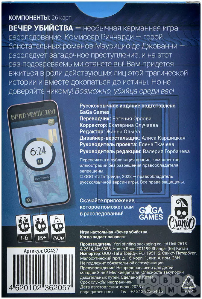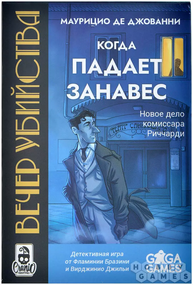 "Вечер убийства" – это захватывающая серия детективных карточных игр, вдохновлённая историями знаменитого итальянского писателя Маурицио Де Джованни о храбром Комиссаре Риччарди.