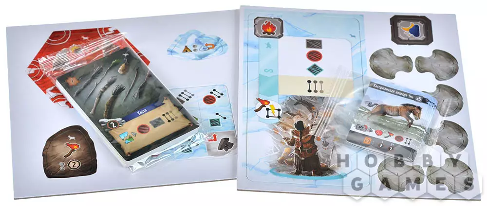 Вам было скучно играть с базовыми механиками? Тогда это дополнение точно для вас! В нём добавлено то, что прекрасно отображает дух древности – наскальные рисунки! К уже привычным компонентам игрока добавляется двухсторонний планшет, а к ряду возможных действий ещё одно – рисование. Вы будете закрашивать на своём планшете точки, отмечая прогресс общины, и соединять их линиями. В конечном результате у вас появится живописное изображение животного вашего племени. Ну или гигантского мамонта. В общем, что вам будет по душе.