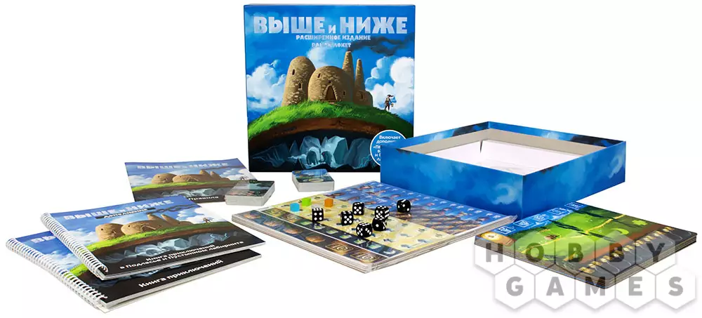 "Выше и ниже" – красивая настольная игра с приятным дизайном, где в распоряжении игроков будут целые деревни с жителями, а задачей каждого будет развивать свой посёлок на поверхности и под землей. Здесь требуются хорошие менеджерские навыки руководства рабочими, где каждый из них уникален и выполняет определённую работу лучше других. Но эта игра является не просто экономическим еврогеймом. Главной и уникальной особенностью "Выше и ниже" является наличие элемента повествования, что очень необычно для такого жанра. Когда снаряжается экспедиция в шахту, начинается настоящее приключение с подробными описаниями и выбором вариантов действий. Если вам удалось пройти все подземные проверки, то награда будет достойной и она приблизит вас к победе.