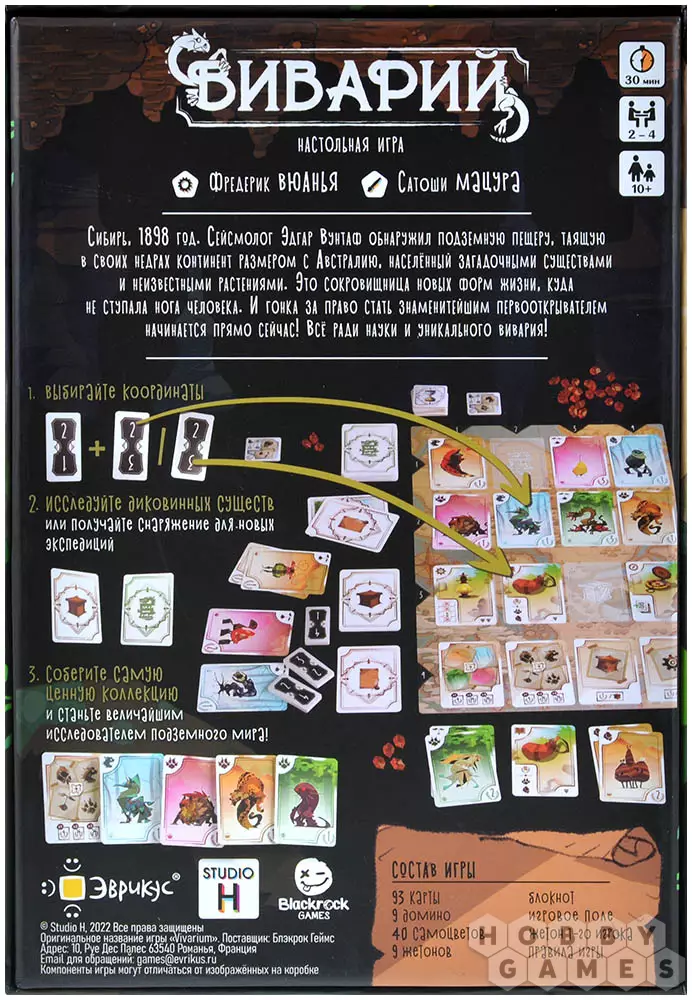 В карточной настольной игре "Виварий" вам предстоит посетить невиданное человечеству место и собрать коллекцию из необычных существ. Разумеется, голыми руками этого не сделать, поэтому прямо во время экспедиции вы сможете обзавестись необходимой экипировкой и контрактами со спонсорами. Должен же кто-то финансировать вашу экспедицию!