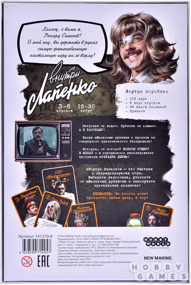 Гунько14.05.2024 13:59Восторг!!! Простая игра, где не нужно выстраивать глобальные логические цепочки, а можно просто расслабиться и получать удовольствие) ОЧЕНЬ понравилась. Играли несколько часов, смеялись, общались, потом вообще не выдержали включили сериал и начали пересматривать., параллельно играя. Особенно понравились карты уловок, на которые сам же можешь и попасться, результат непредсказуем!) С нами играл человек, который не смотрел ни одной серии Лапенко, так вот тоже всё понравилось. Крайне рекомендую.