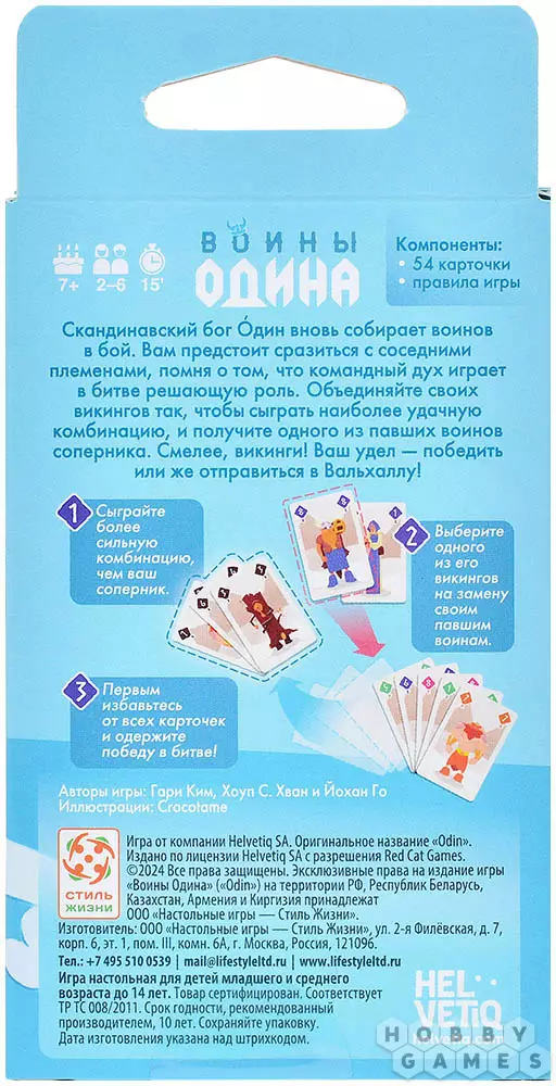 "Воины Одина" – увлекательная карточная игра в скандинавском сеттинге. У каждого из вас будет свой отряд викингов – карточек с номиналом от 1 до 9. Собирайте выигрышные комбинации, чтобы обыграть соперника, и первым сбросьте все карты с руки, получив как можно меньше штрафных очков. Тот воин, которому это удастся, станет возлюбленным и достойнейшим дитя Одина.