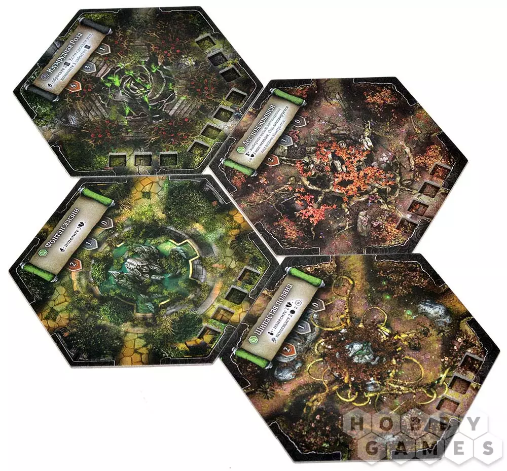 События, выложенные ранее на планшет событий, сдвигаются вперёд на 1 ячейку – событие, сдвинутое таким образом за предел планшета, убирается из игры, а Чёрная Роза получает очки силы равные значению в правом нижнем углу сброшенной карты