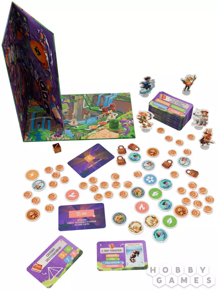 Перед вами карта, испещрённая множеством таинственных троп. Пойдёте по одной – окажетесь в джунглях, где за каждым поворотом прячется сюрприз. По другой – в мрачном подземелье, где сокровища охраняет дракон. А главное, куда ни ступите, везде поджидают вопросы, ловушки и неожиданные испытания! Кубик, фишка, немного везения – и вот уже кто-то приближается к заветной сокровищнице.