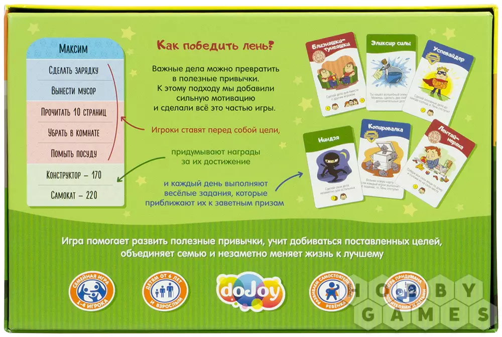 Название настольной игры "Волшебный пендель" говорит само за себя. Эта игра рассчитана на то, чтобы превратить скучные, но важные дела в увлекательный процесс достижения цели. Игроки будут ставить перед собой задачи и придумывать награды, которые они получат за достижение поставленных целей. Каждый день они будут получать задания, выполнение которых будет приближать их к заветной награде!
