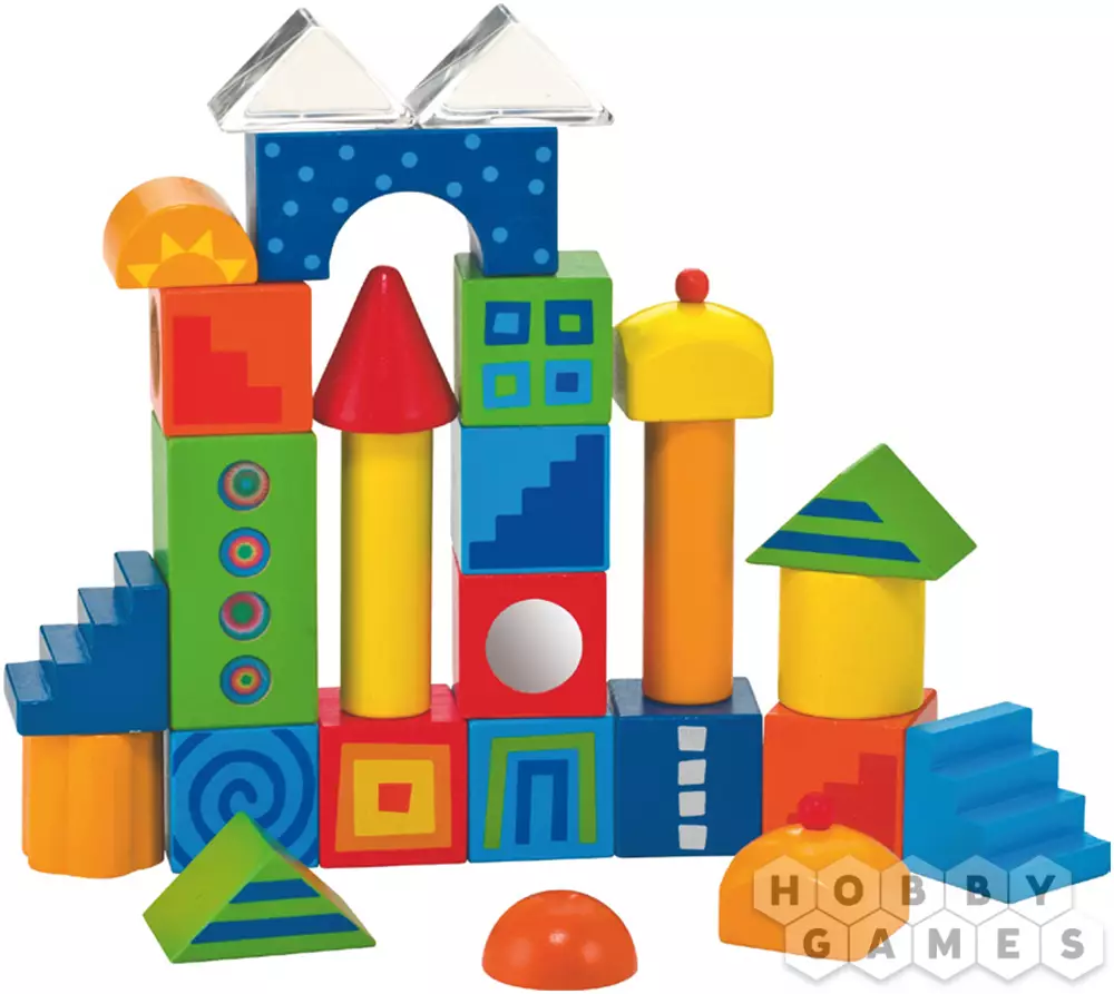 Эти 26 красивых строительных блоков очаруют детей и превратят их первые строения в настоящие шедевры архитектурной мысли! Зеркальные, с блестками и рисунками – башенки вашего малыша заиграют новыми красками, никак не ограничивая его воображение. К тому же, эти кубики с легкостью комбинируются с другими кубиками от HABA.