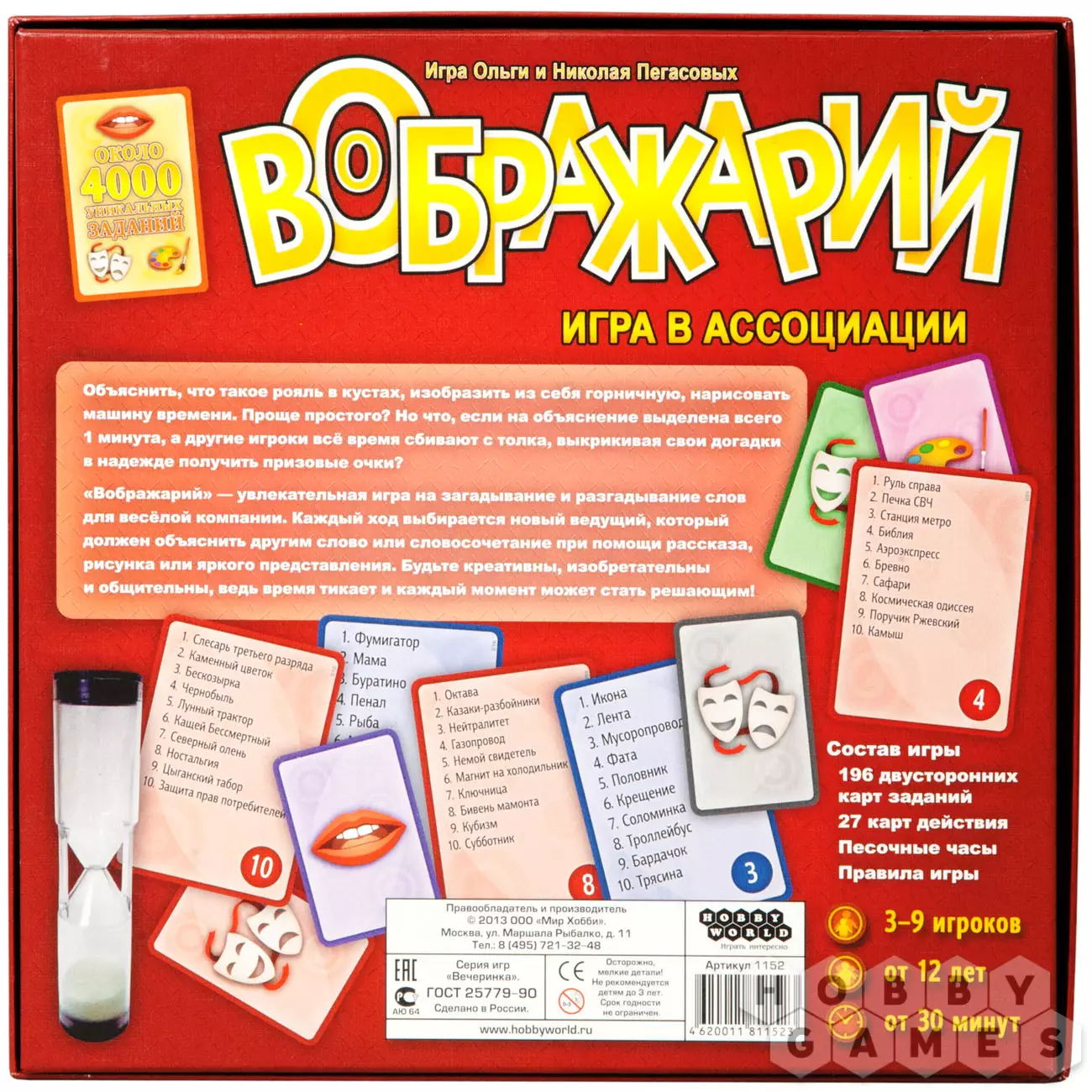 «Воображарий» - это веселая и интересная настольная игра в «угадай что» для дружной компании, купить которую можно в нашем интернет-магазине. Ведущий меняется каждый ход и получает задачу – объяснить остальным слово или словосочетание устно, изобразительно или целой пантомимой! Вам помогут креативность, изобретательность и желание общаться – времени на объяснение совсем немножко!
