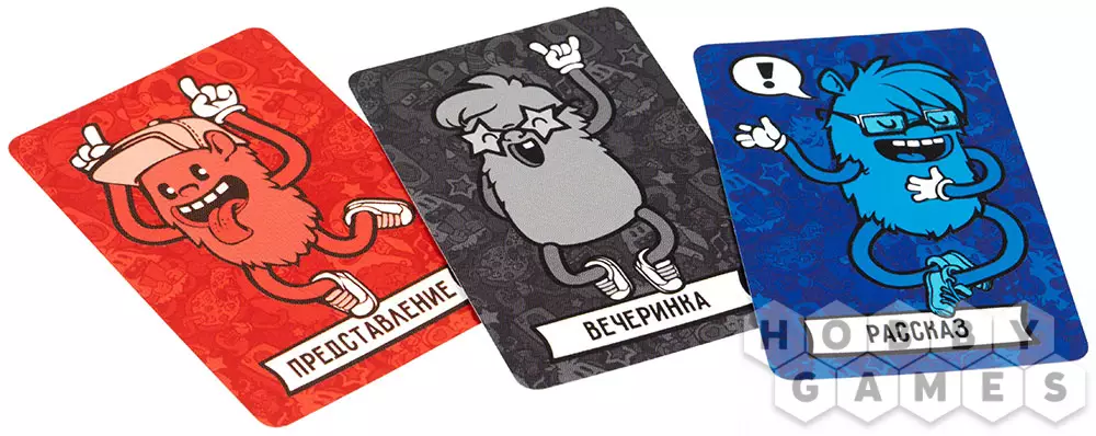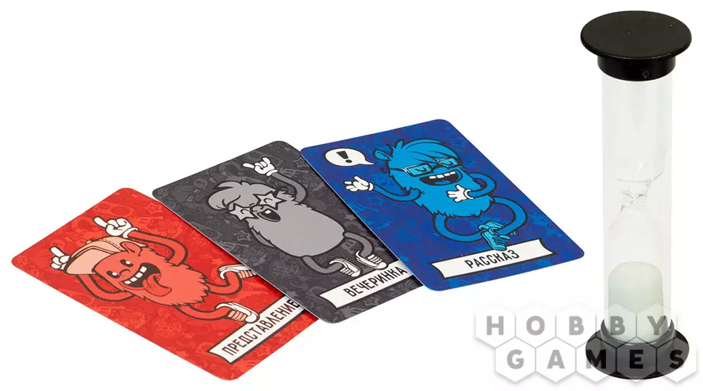 Перед началом партии игрокам предстоит решить, со словами какой сложности они будут играть. Если с простыми, то все карточки должны лежать синей стороной вниз, если со сложными словами, тогда красной стороной вниз. На каждой карточке, помимо десяти слов или словосочетаний, есть числовое обозначение – именно оно указывает, под каким номером будут объясняться слова. Игроки выбирают ведущего игрока на этот раунд, он вытягивает две карты из колоды, не показывая их другим игрокам, и по рубашке оставшейся верхней карты определяет номер задания. После ведущий выбирает доступный способ объяснения – рассказ, представление или вечеринка – и старается объяснить одно из вытянутых слов. После истечения времени или объяснения слова право ведущего передаётся игроку слева.