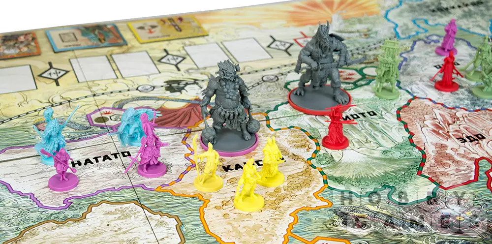 В игре очень интересные механики выбора ходов и непосредственно боевых действий, реализованных в виде аукциона. Игра подарит вам уникальный игровой опыт. Помимо этого, большое значение играют храмы, которые выбираются случайно на каждую партию, а также параметры чести и дипломатия.
