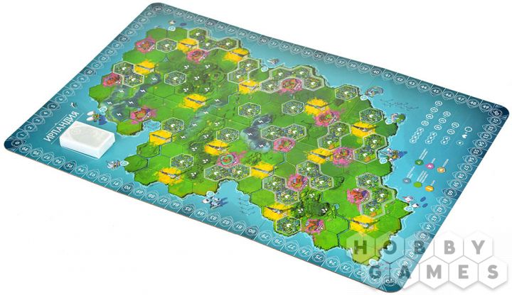 "Возрождение" – стратегическая евро-игра, которая сочетает простые правила с глубокими тактическими решениями. Игроки по очереди выставляют свои фишки на карту. Основная задача – создавать цепочки ферм для получения очков, основывать поселения разного размера для усиления контроля над регионами и окружать замки и соборы, чтобы получить за них дополнительные победные очки. Каждый ход – это тактический выбор: усилить свою сельскохозяйственную сеть, расширить поселение или перекрыть путь сопернику к ключевому объекту? Пространство ограничено, и к концу партии каждый ход становится решающим. Партия заканчивается, когда все игроки разместят свои жетоны. Подсчитываются очки за поселения, замки, задания и бонусные структуры. Победителем становится игрок, набравший наибольшее количество победных очков!