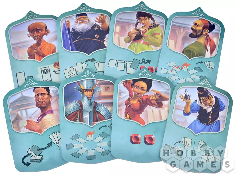 Взять товар. Рядом с каждым жетоном персонажа находится карта товара – вы забираете её себе на руку или кладёте в лавку. Для победы важно и то, и другое! Примечательно, что, игрок, имеющий в своей лавке больше всех товаров определённого типа, получает соответствующий жетон преимущества.