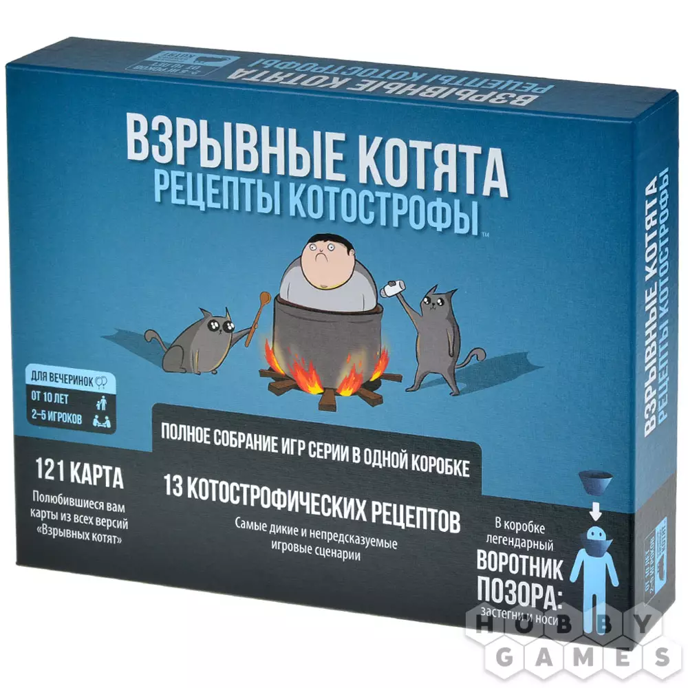 Безымянный комментатор02.06.2025 14:24Самая лучшая самостоятельная игра из всех, которые есть в данной серии. В ней собраны карты из множества дополнений которые выпускаются и на данный момент. Нет карт из самостоятельной версии - зомби котята и карт "Подлижись". Самое интересное это конечно же 121 карта и 13 рецептов, которые позволят поменять игру чуть-ли не наизнанку, рецепты также можно придумать самому. Воротник позора тоже забавная вещь для весёлых посиделок. Плюс этого издания в том, что комфортно играть хоть вдвоём, хоть впятером, рецепты сбалансированы и позволяют подобрать игру под количество игроков. Много зип-пакетов для карт, чтобы долго не искать нужные для сбора рецепта к игре. Если вы любите взрывных котят то эта версия самая лучшая для подарка, не пожалеете!