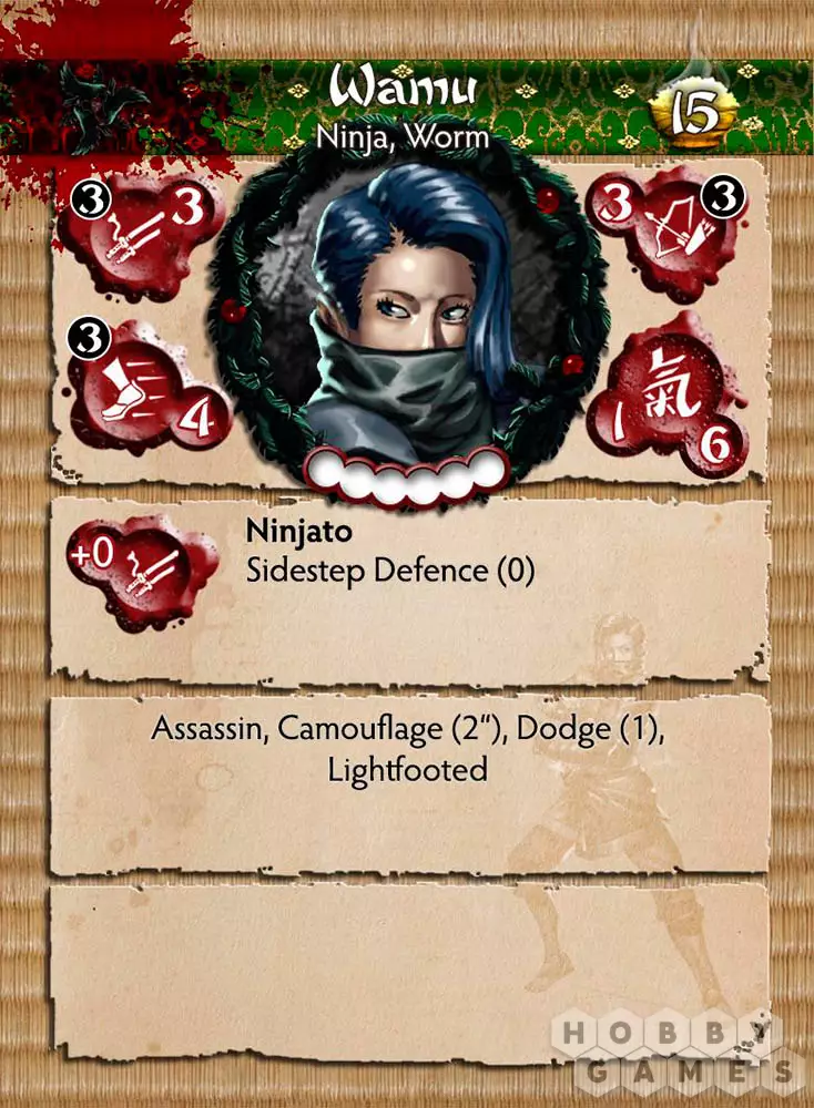 В результате изнуряющих тренировок Kaze Kage Zoku появился ещё один член клана Worms – Wamu. Подающий большие надежды рекрут. Как и её коллеги, Wamu использует все советы и учения своих мастеров. Умелый воин и многообещающий новичок пути ниндзя.
