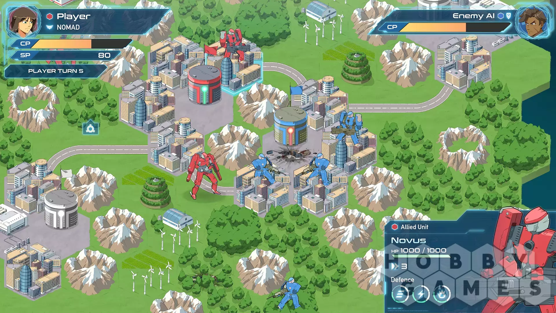 Choose from four commanders, each representing a different faction and bringing with them their own unique power, traits and play style. Think tactically as you move your units, clash with rival mecha, and watch the outcome in dramatic battle sequences inspired by 90s Japanese animation.