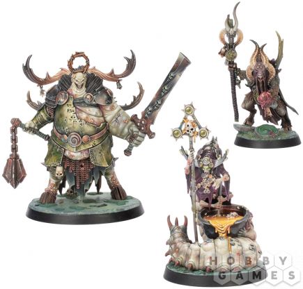 4x villain miniatures: Gelgus Pust, Belga the Cystwitch, Mulgoth the Cleaver, and Shaman Foulhoof