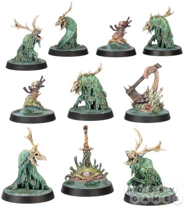 33x enemy miniatures: 2x Cankerborn, 3x Blight Templars, 6x Mire Kelpies, 8x Pestigors, and 14x Pox-Wretches