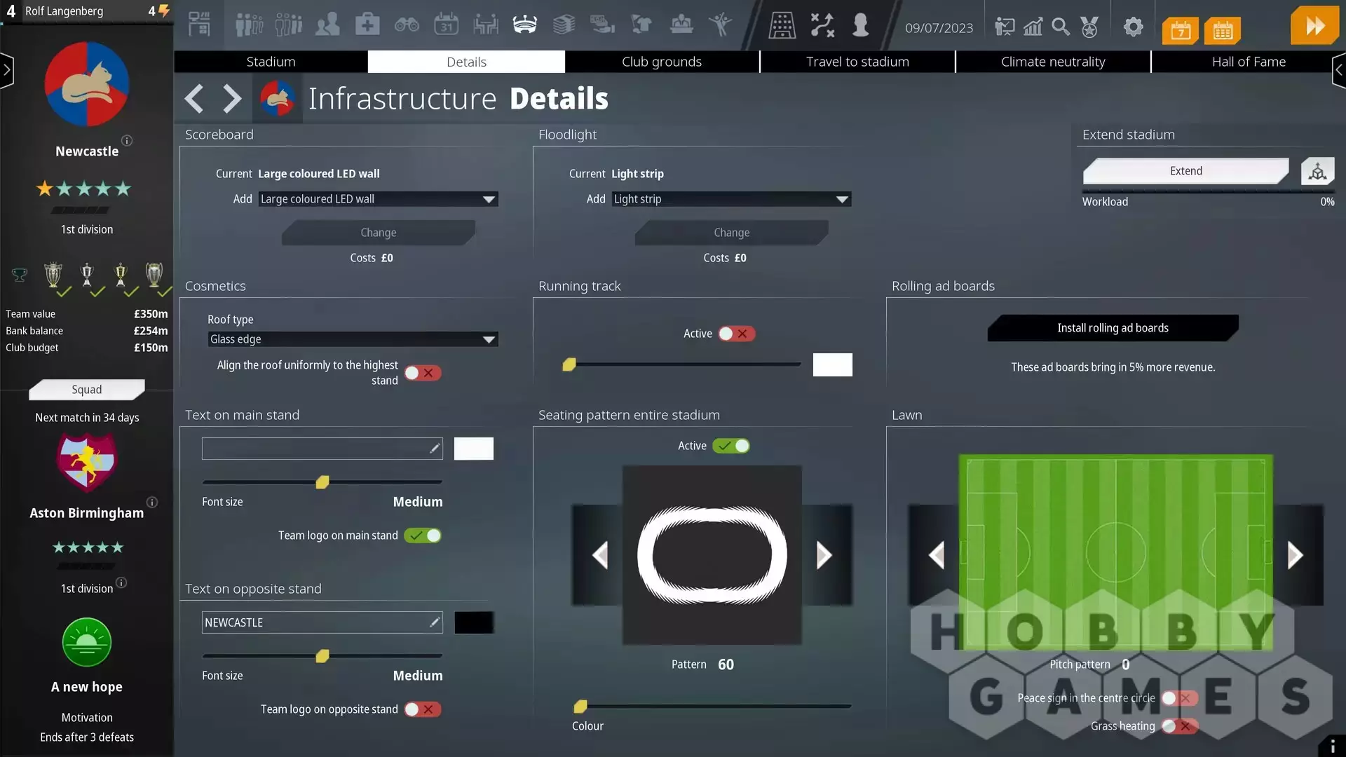 - Stadium editor that lets you expand, upgrade, and customize your home ground