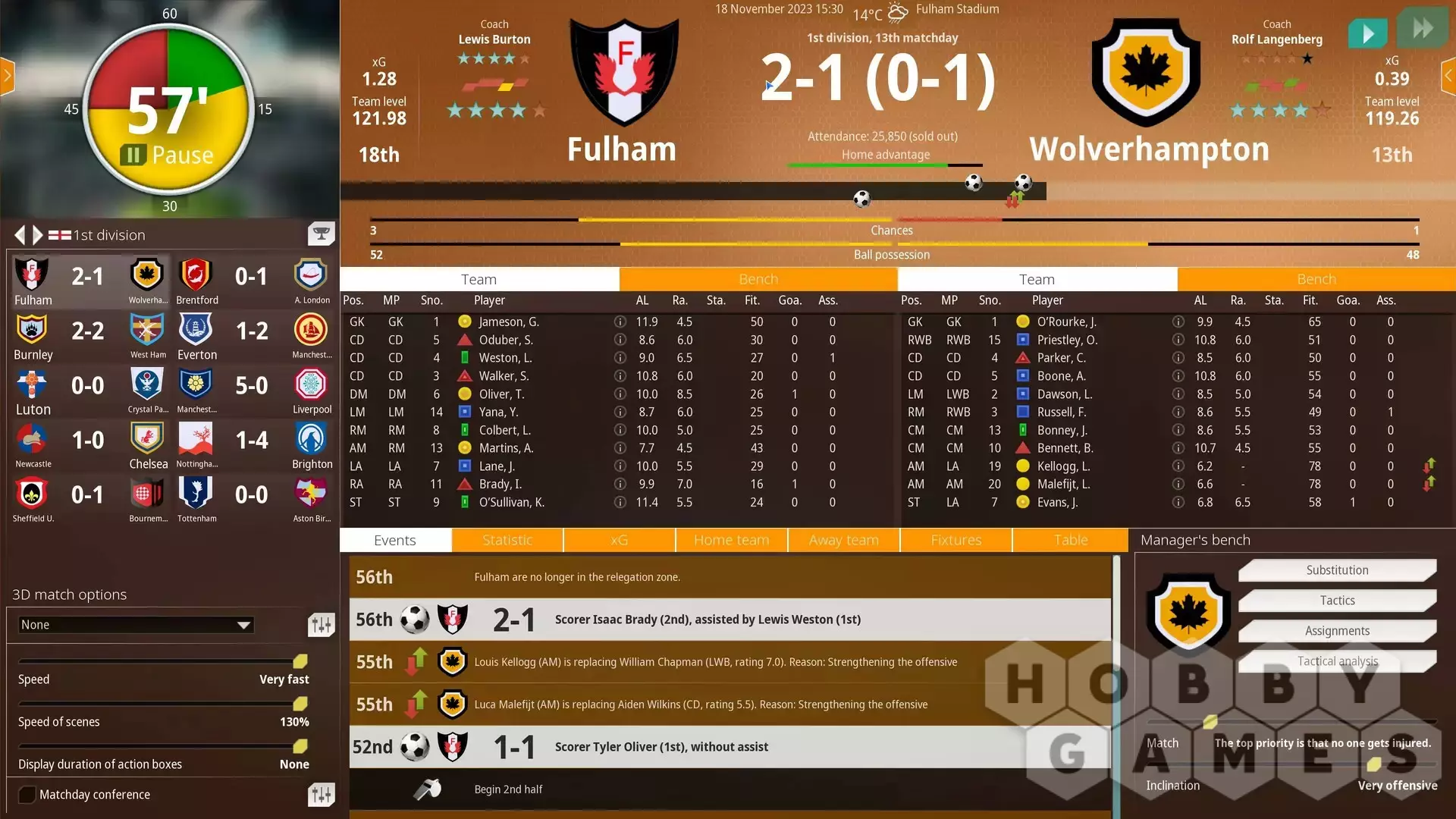 Be there with your team on the pitch. In our immersive 3D game engine, you can directly influence the action on the pitch through instructional shouts. Simulate the same game a thousand times over, witness matches 50 years into the future or switch between games in conference mode on match day. Relive highlights, analyze goals, and enjoy a comprehensive season summary.