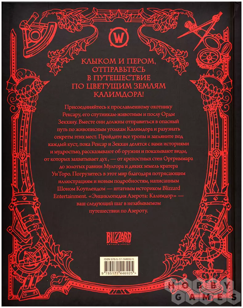 Отправляйтесь в непростое, но увлекательное приключение по Калимдору в сопровождении охотника Рексара и посла Орды Зекхана! Изучите все уголки этих земель и раскройте их тайны! А пока вы бредёте из точки "А" в точку "Б" Рексар и Зекхан будут рассказывать вам всё, что сами знают об этих местах и об их истории. Окунитесь с головой увлекательную географию этого места с интересными и подробными иллюстрациями. С этой энциклопедией вы станете на шаг ближе к изучению Азерота!