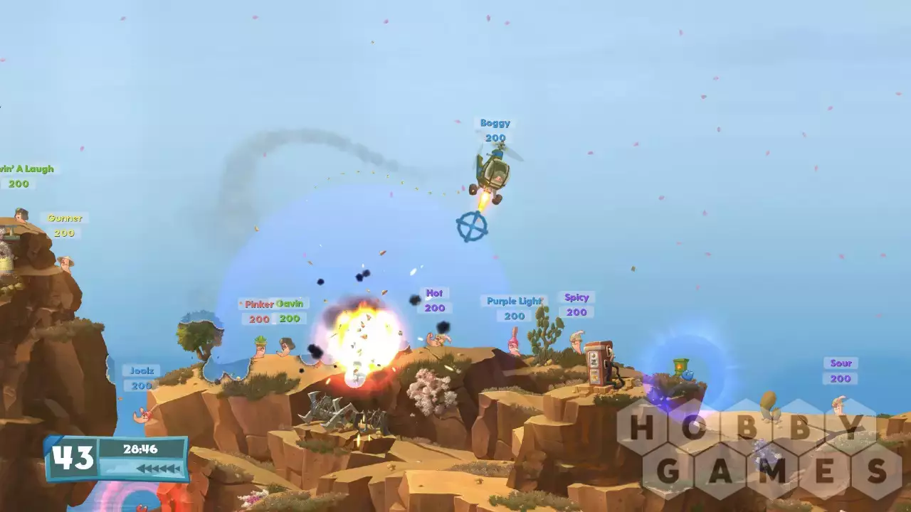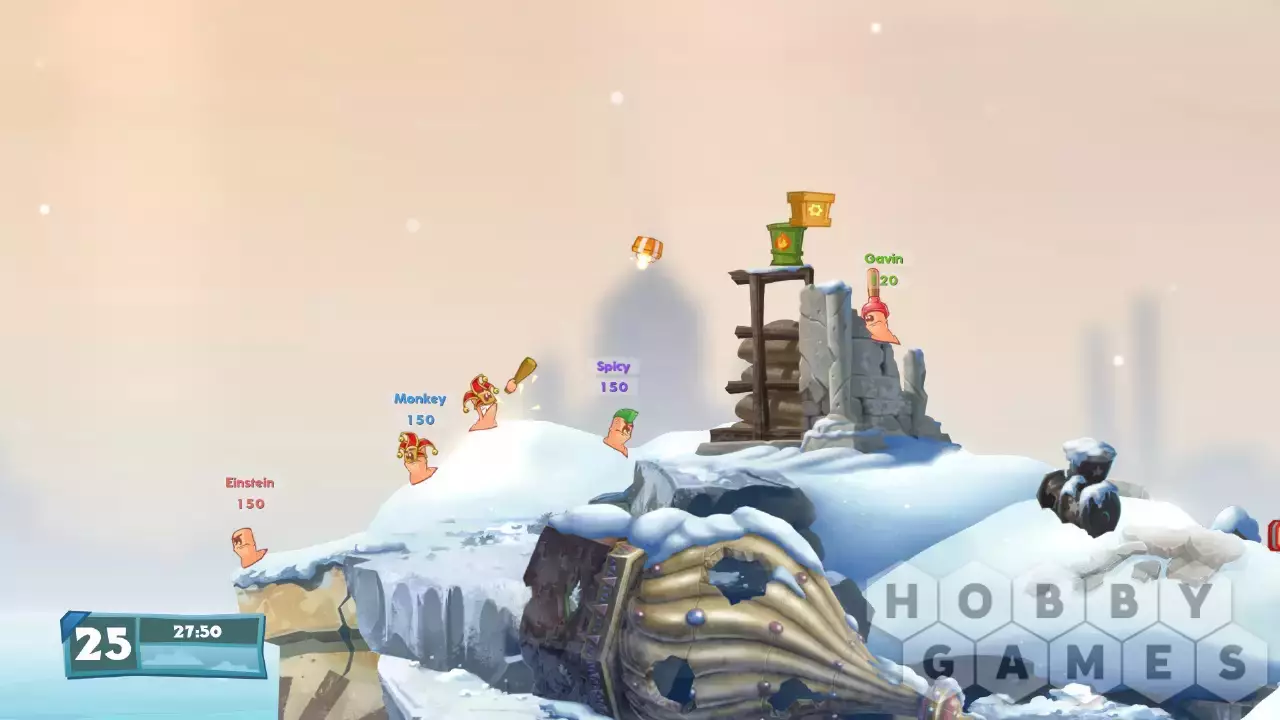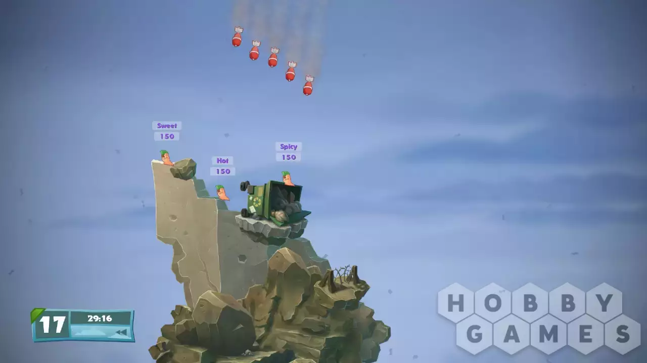 - Crafting: No more waiting around while your opponents take their turns! Grab the crafting crates that drop from the sky during games to make fiendishly upgraded versions of items such as the Electric Sheep, the Bazooka Pie, and the Holy Mine Grenade to unleash on your enemies!