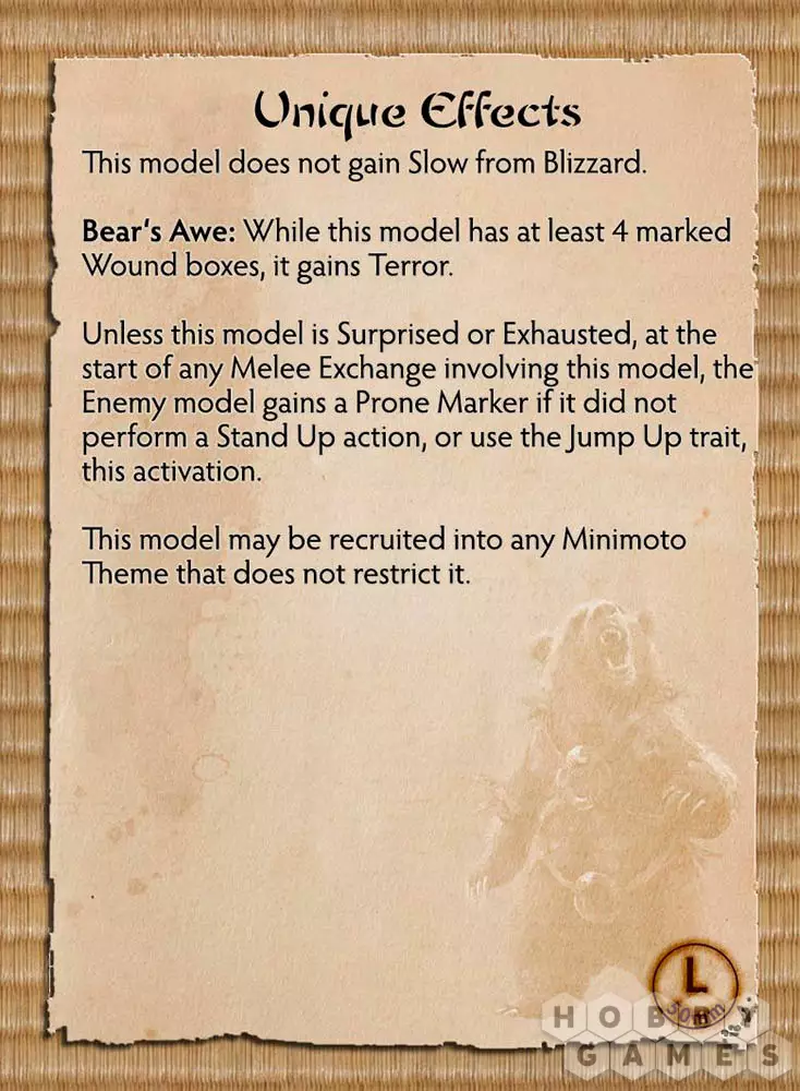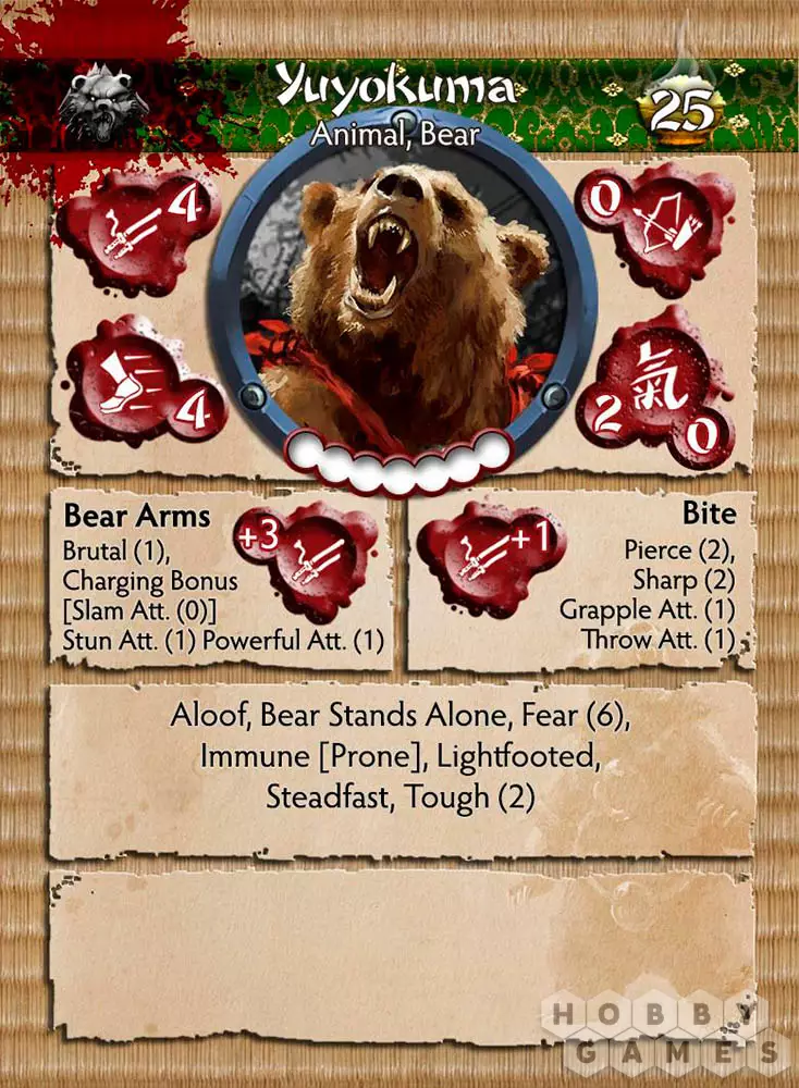 Жизнь на вершинах Iron Mountains сурова и беспощадна. Это обитель снега, льда и бушующих метелей, для слабых тут не найдётся милосердия. Лишь немногие существа могут жить и набираться сил в этом безбожном месте. Одним из таких зверей является Yuyokuma, медведь огромных размеров и силы, имеющий духовную близость с кланом Minimoto, ведь последние поклоняются медведям, чтя традиции предков.
