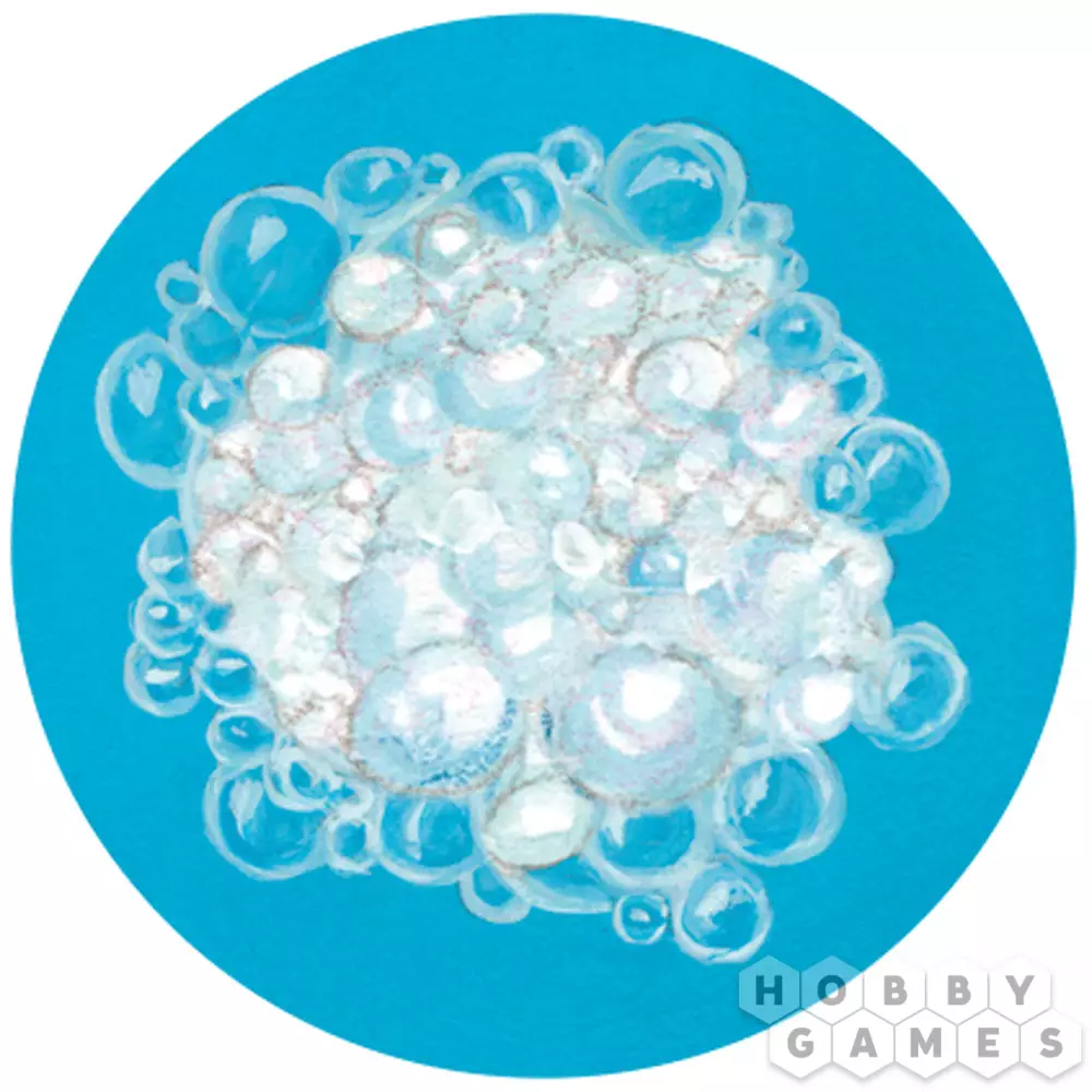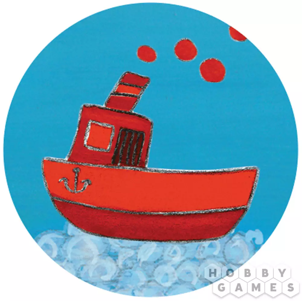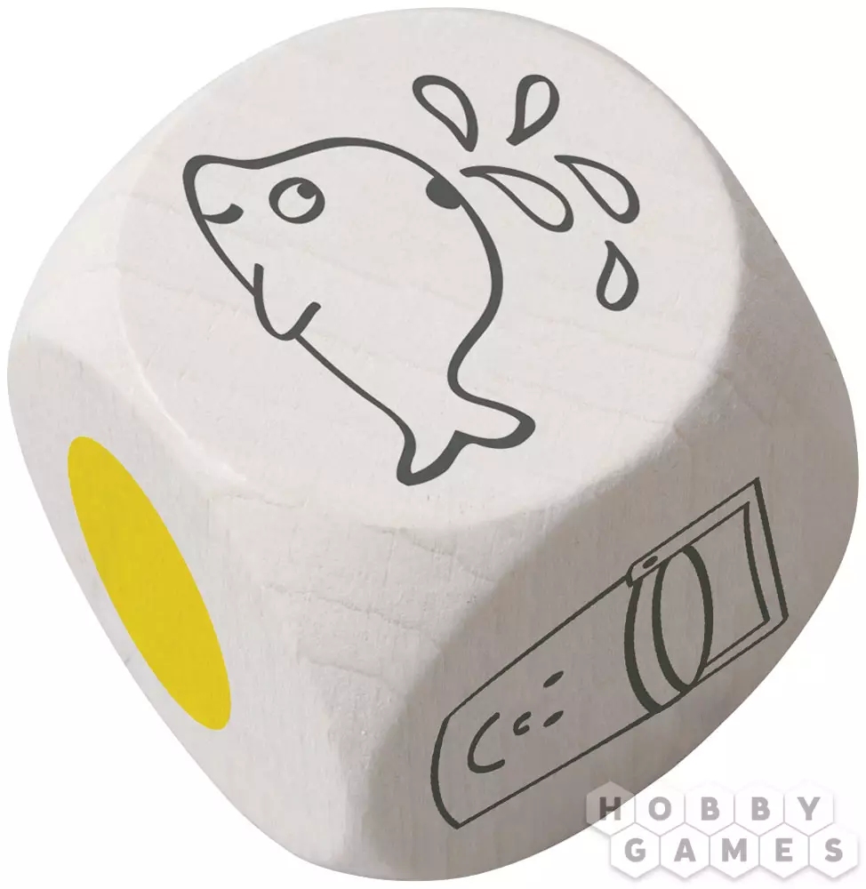 Вариант "Что там плавает в воде?" – это простая игра на угадывание. Игроки по очереди берут один из закрытых жетонов и спрашивают своего соседа слева, что на нём изображено: ведёрко, кит или корабль. Чтобы ответить, нужно взять кубик и выбрать грань с изображением нужной игрушки. В случае неправильного ответа жетон сгорает и уходит в «ванночку». Развивает моторику