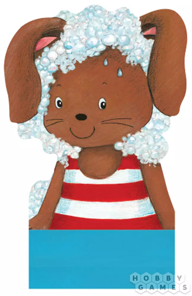 "Зайка Купайка" – детская развивающая настольная игра для самых маленьких настольщиков! Она предлагает вам сразу несколько вариантов правил. Есть вариант на память и цвета, в котором нужно будет помочь зайке найти свои игрушки под пенкой, другой вариант отлично развивает словарный запас, а третий – мелкую моторику.