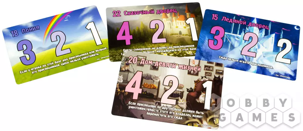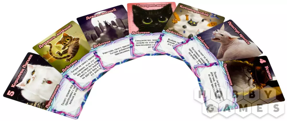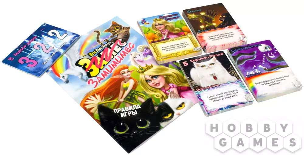 В коробке “Замес. Мимими” всего 4 новые фракции, из которых можно собрать 6 разных уникальных колод. Это число можно увеличить, объединив расширение “Мимими” с прошлыми и будущими версиями игры.