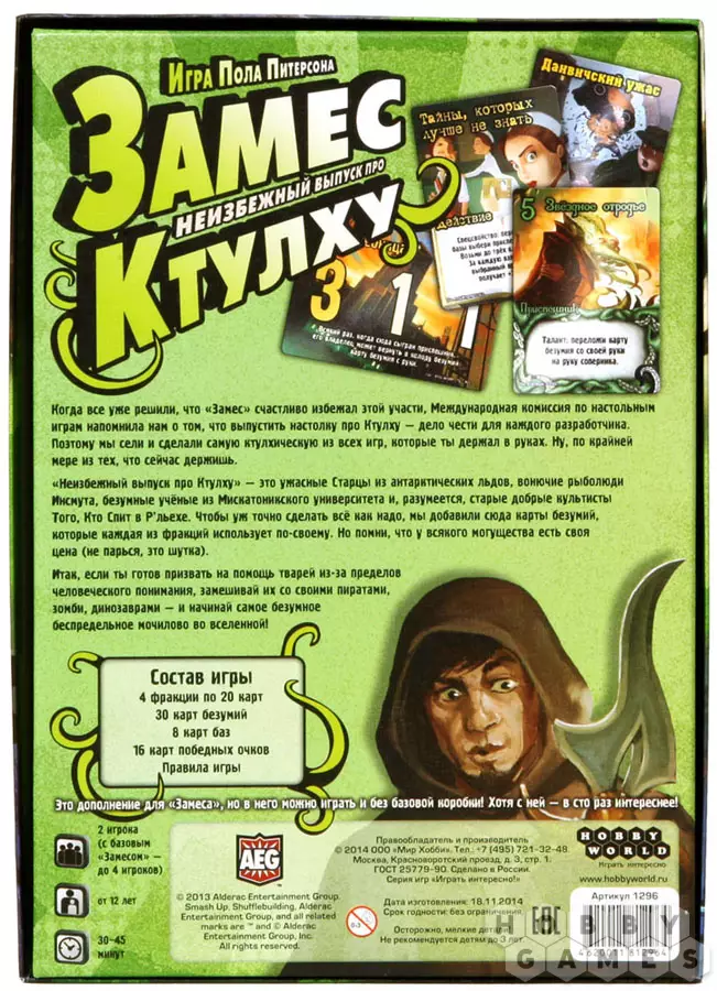 В "Замес. Неизбежный выпуск про Ктулху" можно играть как в самостоятельную игру, если вы решитесь начать замес вдвоём, но для большего количества игроков вам потребуется базовая версия игры "Замес".