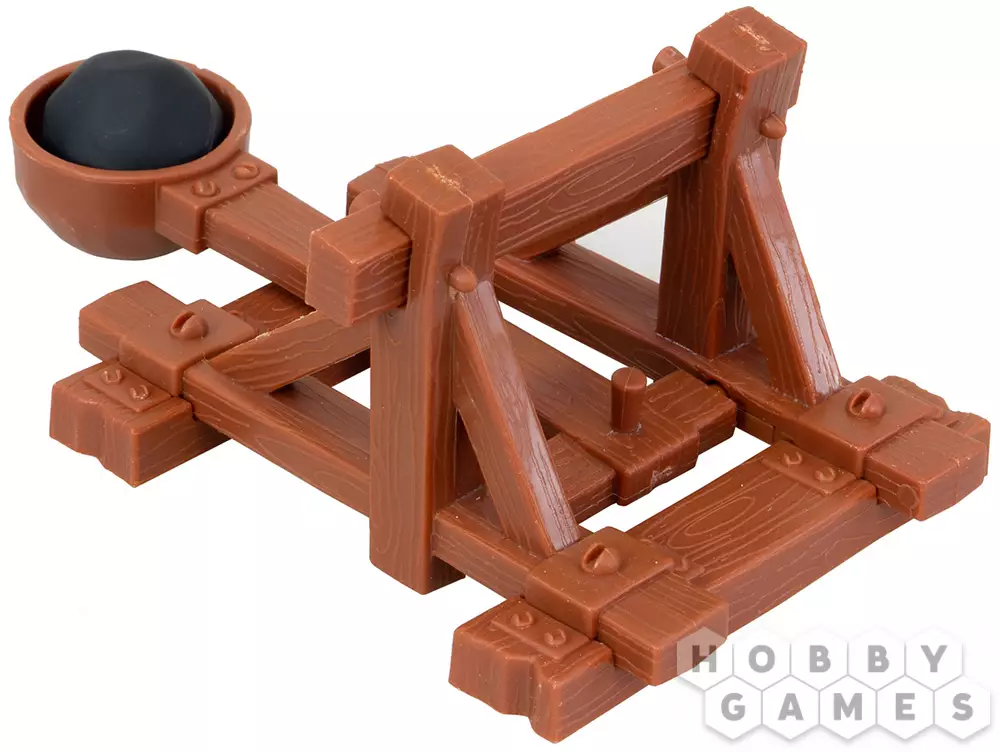 "Замки и Катапульты" – это семейная интерактивная игра, в которой двум игрокам предстоит возвести укрепления из строительных блоков, расставить по ним фигурки своих солдат и начать катапультную артподготовку (контемпорари арт тут ни при чём!) перед наступлением. Они будут расстреливать замки друг друга и разыгрывать карты действий, ремонтируя укрепления, производя залпы, воруя эти карты друг у друга и склоняя солдат противника к предательству. Выиграет тот, кто выведет из строя всю армию противника.